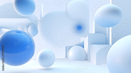 3d rendering of white and blue abstract geometric background. Scene for advertising, technology, showcase, banner, game, sport, cosmetic, business, metaverse. Sci-Fi Illustration. Product display