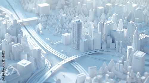 3d rendering of white map scene with city roads buildings top view isometric perspective