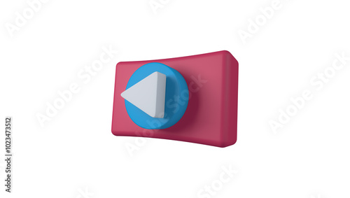 3D rendering, Pink and blue play button mock up, icon and symbol design, isolated on white background.