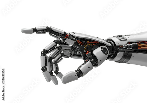 3d Rendering Robotic Hand Pointing with Metal Design in Transparent Background
