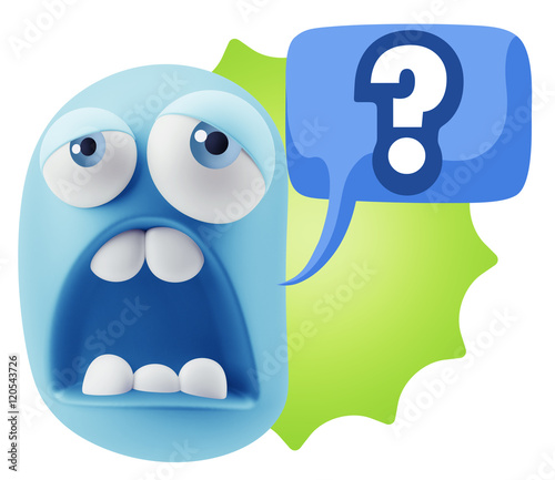3d Rendering Sad Character Emoticon Expression saying Question M