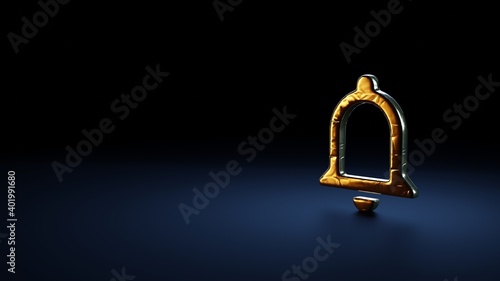 3d rendering symbol of notifications bell button wrapped in gold foil on dark blue background