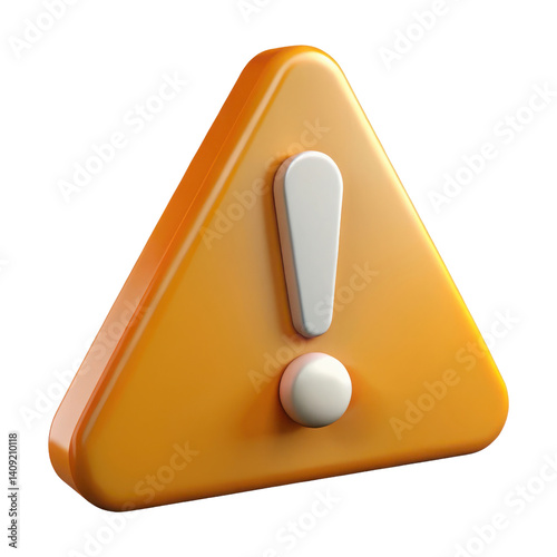 3D Rendering Yellow Warning Sign on Isolated Transparent Background