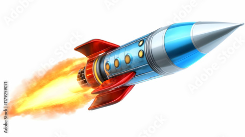 3D Rocket Launches into Space with Blazing Exhaust