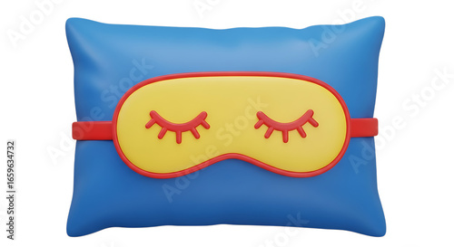 3d self care rituals icons blue pillow with a yellow sleep mask isolated on transparent background