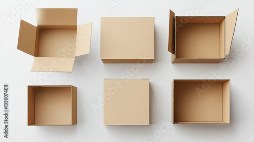 3D set of cardboard boxes isolated on white background. Vector realistic illustration of carton package for parcel delivery, closed and open packaging, product stored at warehouse, shopping order