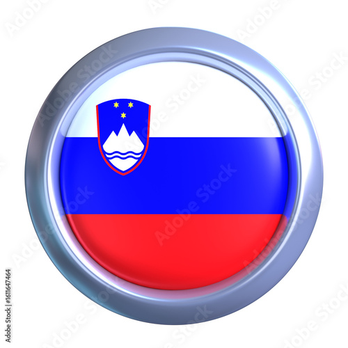 3D Slovenia Flag Emblem with circle metallic frame, showcasing national emblem detail in a polished, modern design. Perfect for apps, UI, or educational use
