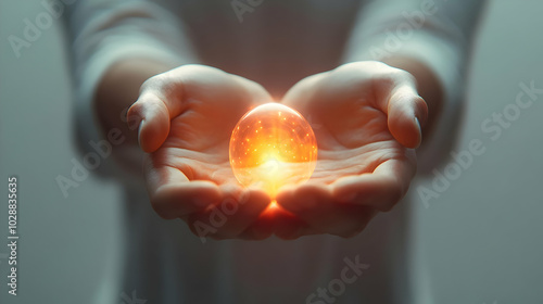 3D Soft Focus Hands Sculpting Abstract Glowing Discount Symbol Concept - Creative Process Close-Up with Icon on White Background