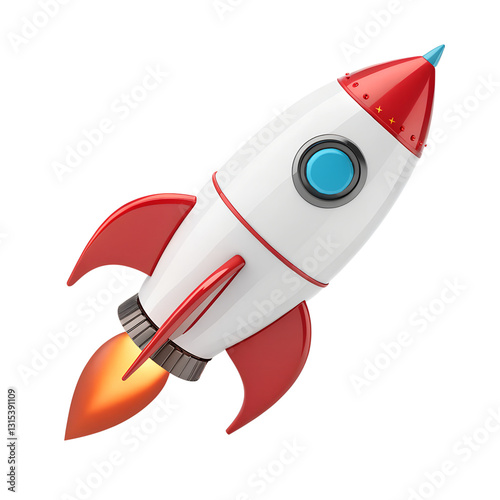 3d Space rocket flying icon. Minimal Toy rocket launch icon on isolated white background 3d render.