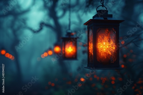 3D Spooky lanterns background with horror place