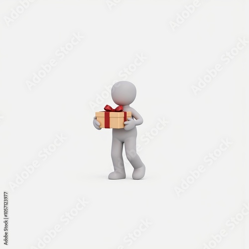 3D Stick Figure Character Holding Gift with Copy Space for Celebration Designs