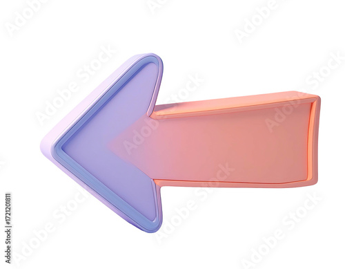 3D stylized left-pointing arrow, light purple and peach