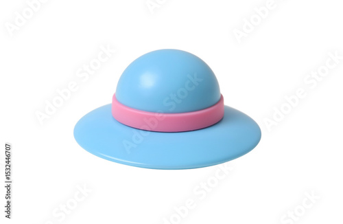 3D summer beach hat in blue with pink ribbon, fun cartoon icon style on transparent background