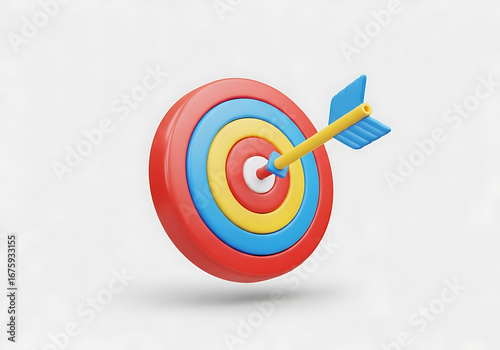 3d target with an arrow hitting the bullseye isolated on white background
