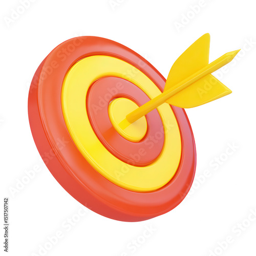 3D Target with arrow hitting the bullseye, isolated on transparent background
