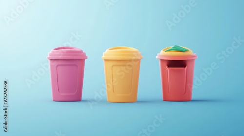 "3D vector icon of a trash can or trash bin, representing an environmental garbage concept. Designed in a minimal cartoon style."