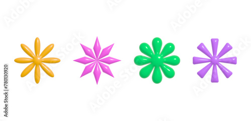 3d vector plastic shapes in 90s style.Abstract cute icons or symbols in y2k aesthetic.Cartoon flowers and sparkles for banners,social media marketing,branding,packaging,covers
