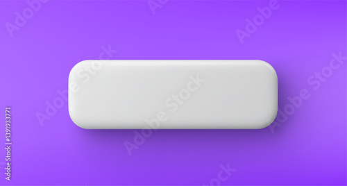 3d vector white plastic rounded rectangular button on purple background. Realistic minimal icon with shadow.