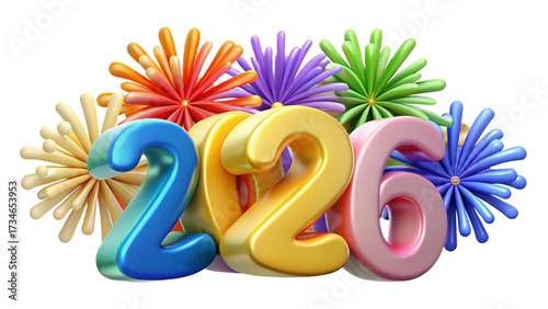 3d Vibrant Happy New Year 2026 Typography with Fireworks & Ornamental Vintage Design