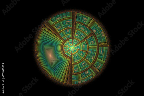 3D visualization and isolated abstract fractal on a black background. The abstract computer is generated by a fractal design. Great for paper cell phone wall phone