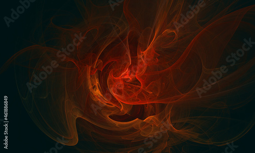 3d vortex of red hot essences, smoke or flames in deep black space. Dynamic and rushing glowing tongues in chaotic motion in darkness. Great as texture, background or element of art or design.