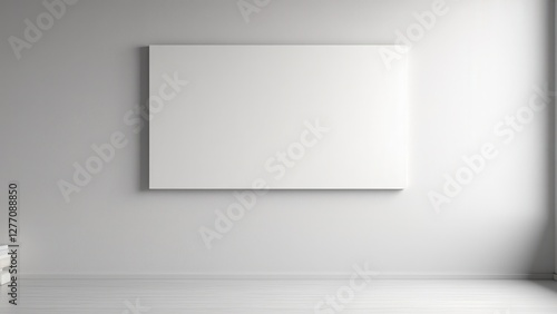 3d wall logo mockup background with a blank white canvas on a light grey wall.