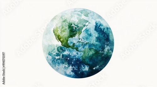 3D Watercolor Earth: Green & Blue Planet - Realistic Illustration