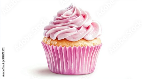 3D Watercolor Pink & White Cupcake - Realistic Digital Art