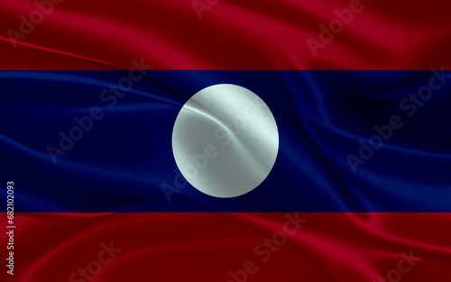 3d waving realistic silk national flag of Laos. Happy national day Laos flag background. close up