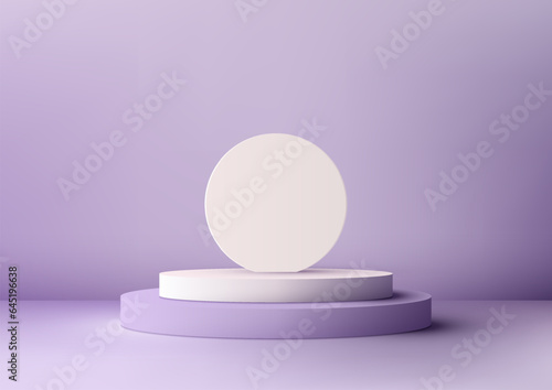 3D White and Purple Podium with White Circle Backdrop on Purple Background