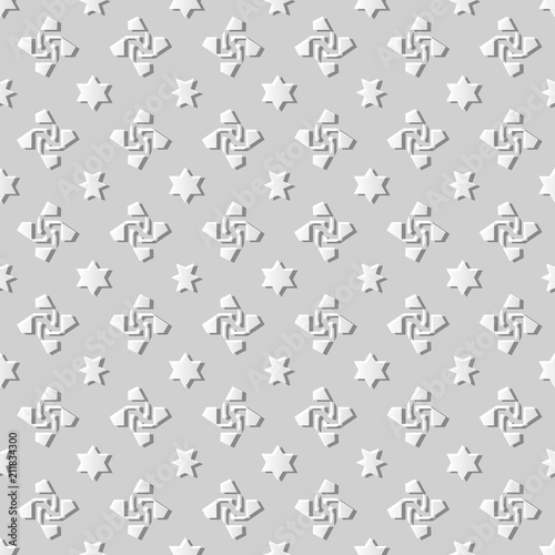 3D white paper art Islamic geometry cross pattern seamless background