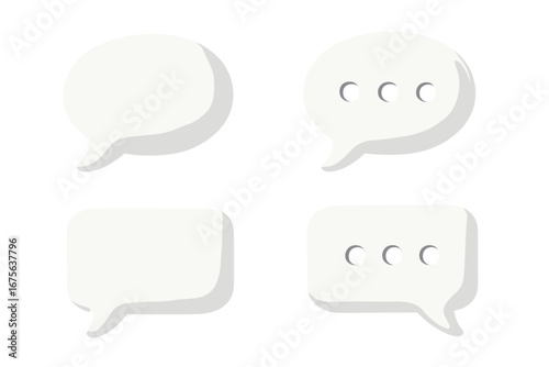 3D white speech bubble chat icon set. Realistic vector communication symbols. Message, dialog, and comment signs for social media, web UI design, and online conversation.