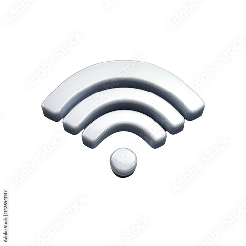 3D White Wireless Signal Icon Modern Connectivity Symbol