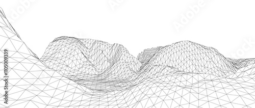 3D wireframe of contour swirl. Abstract wireframe background. Black and white wave.