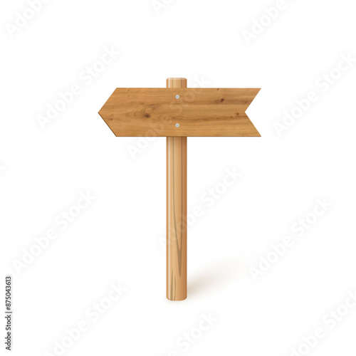 3d wooden signboard vector illustration. Realistic wood sign post. Blank arrow with wood texture, plywood road pointer. City guidance