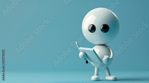 3D Writer:The writer cartoon mascot,equipped with a pen and notebook,embodies creativity and imagination. With a thoughtful expression poised stance,this 3D character captures the essence storytelling