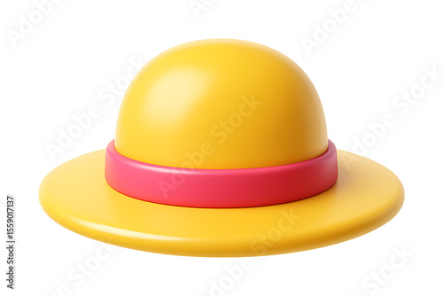 3D Yellow Summer Straw Hat Icon Isolated on a Transparent Background