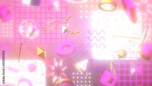 紗がかかった幾何学模様やテラゾー柄が並ぶオシャレな3DCG - ピンク