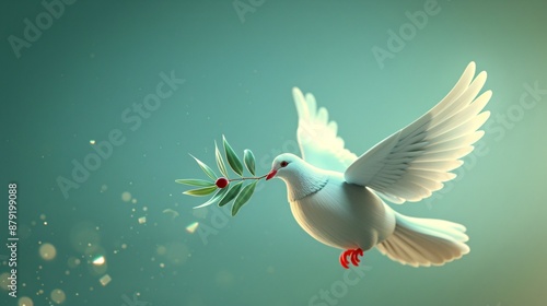 3d-render cartoon style dove carrying an olive branch symbolizing peace Stock Photo with copy space