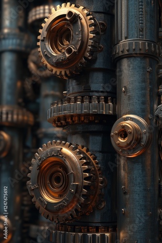 3D-rendered industrial icons featuring machinery and gears