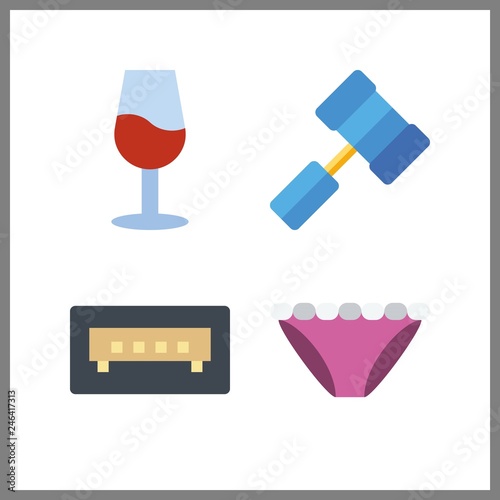 4 closeup icon. Vector illustration closeup set. hammer and wine glass icons for closeup works