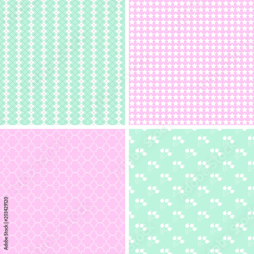 4 Cute different vector seamless patterns.