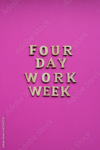 4 day work week symbol wooden letters four day working week concept. Modern approach doing business short workweek. Effectiveness of employees. Productivity and efficiency days off
