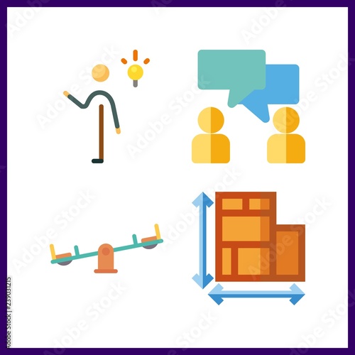 4 idea icon. Vector illustration idea set. seesaw and invention icons for idea works
