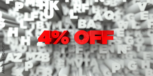 4% OFF - Red text on typography background - 3D rendered royalty free stock image. This image can be used for an online website banner ad or a print postcard.