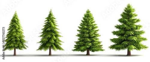 4 png images of the blue green spruce tree, Picea pungens, isolated on a transparent background