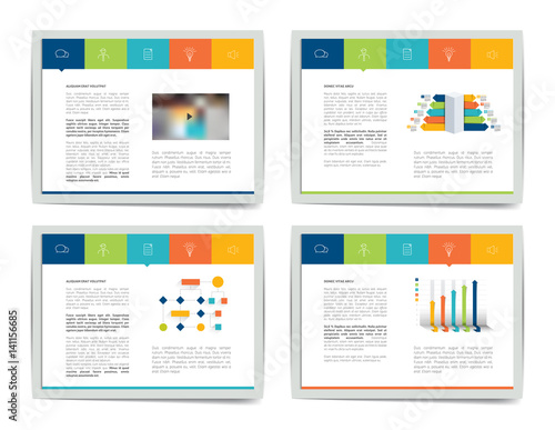 4 presentation business templates. Infographics for leaflet, poster, slide, magazine, book, brochure, website, print.