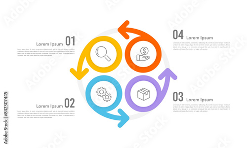 4 process or steps. Infographic element circle and arrows design template. Business presentation, Report, Data, and Planning. Vector illustration.