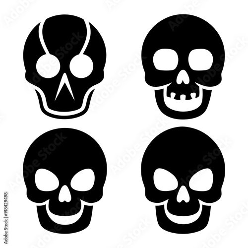4 set skull icons silhouette vector illustration