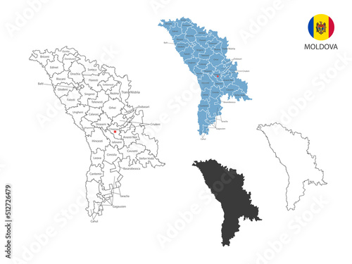 4 style of Moldova map vector illustration have all province and mark the capital city of Moldova. By thin black outline simplicity style and dark shadow style. Isolated on white background.